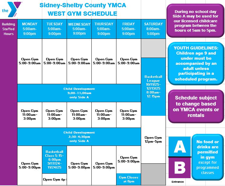 West Gym, Schauer Gym, and Spirit, Mind, Body Studio Schedules can be found below. Please note: Gym schedules are subject to change in the event of private rentals. When applicable, closure notices will be posted on the gym doors, with at least one week’s notice whenever possible.