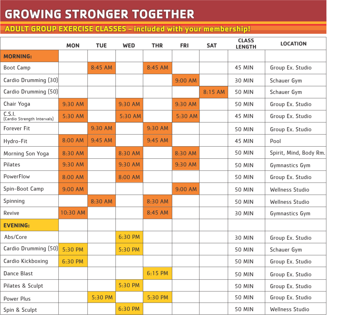 Adult Group Exercise Classes are included with membership! Class sessions run monthly.