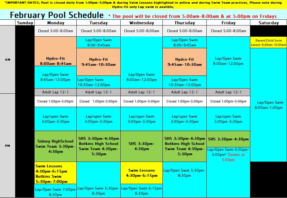 *Lap Swim - Members 15 yrs. and older. Laps can be used for lap swim/walking and excercising with or without equipment. Lap swim can not be used for open play.